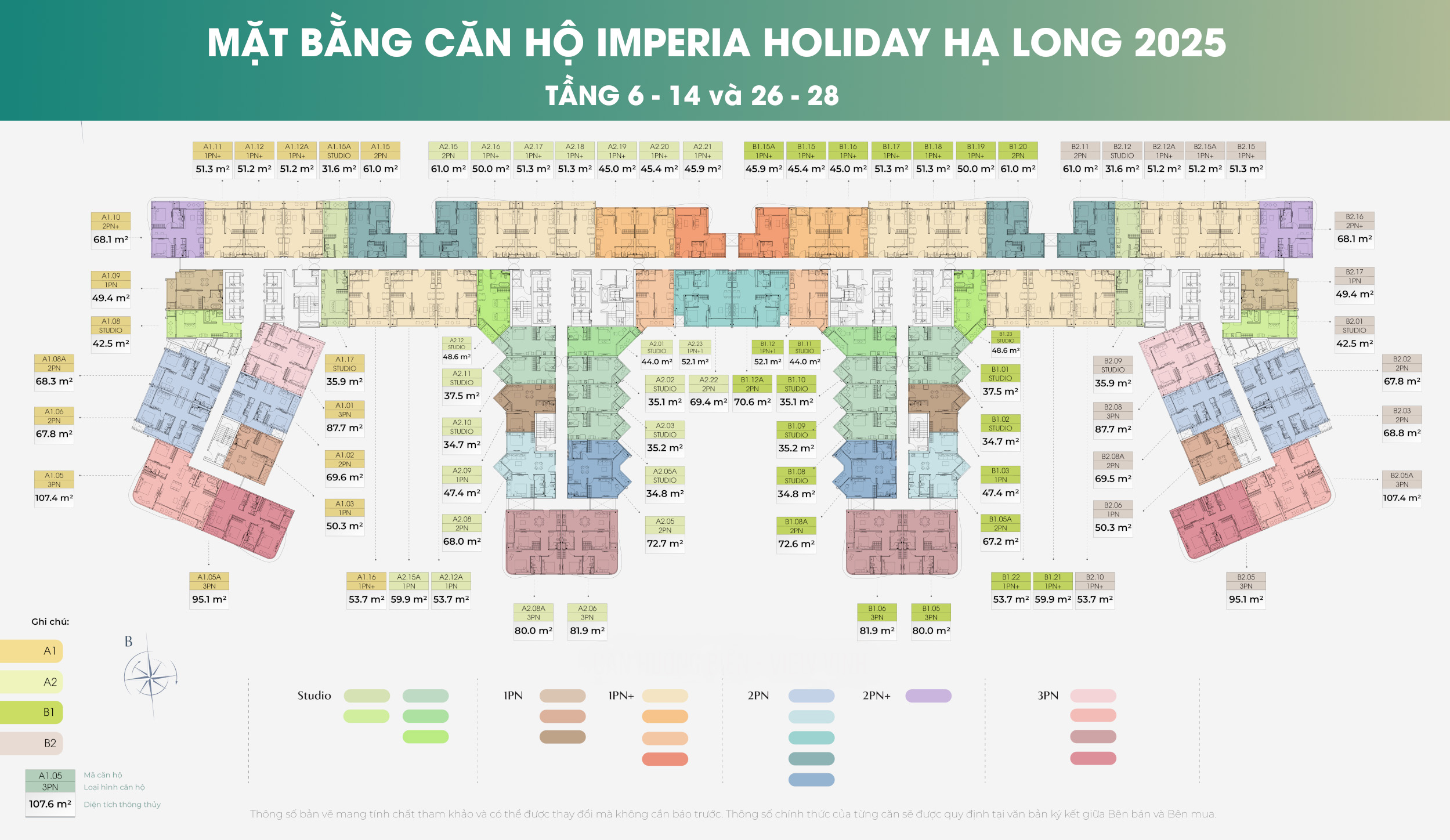 Việc phân bổ mặt bằng hợp lý và đa dạng loại hình căn hộ giúp Imperia Holiday Hạ Long không chỉ thu hút được nhiều đối tượng khách hàng mà còn tạo nên sự cân bằng giữa không gian sống và tiện ích, góp phần nâng cao giá trị dự án trên thị trường bất động sản nghỉ dưỡng.