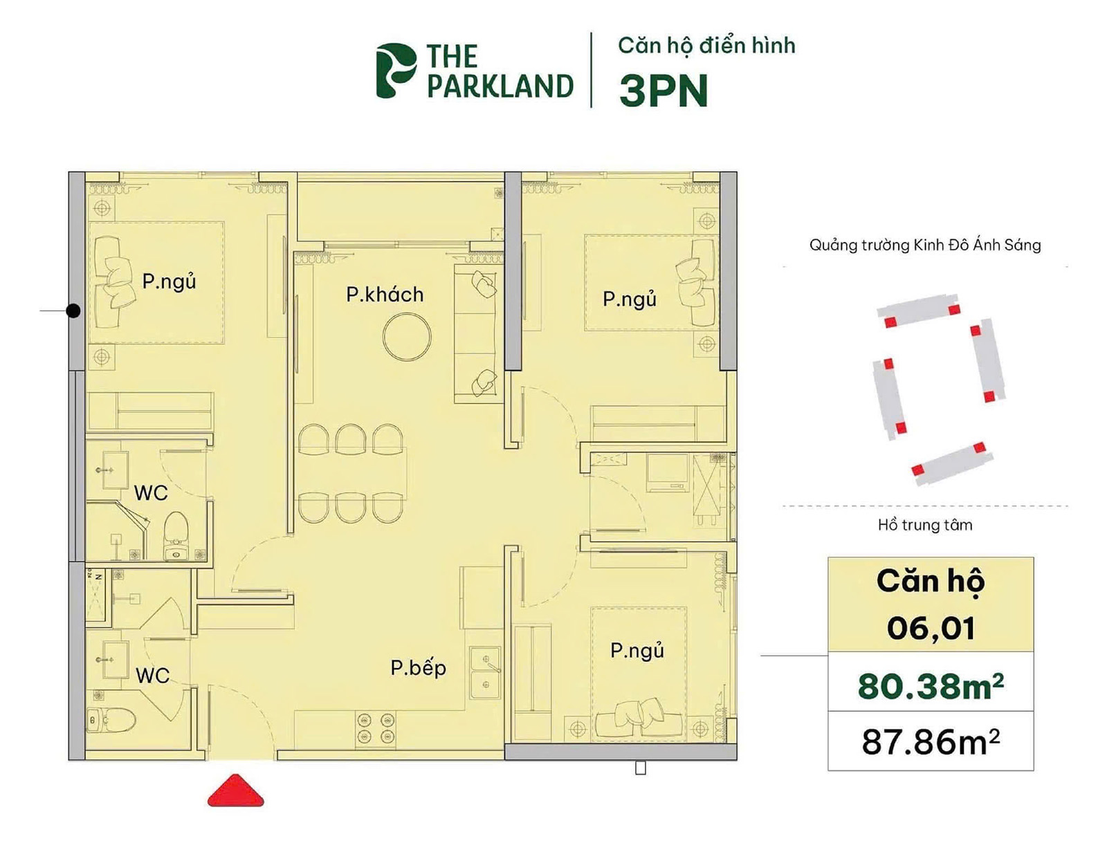 | Căn hộ 3PN | 78 - 81m² |