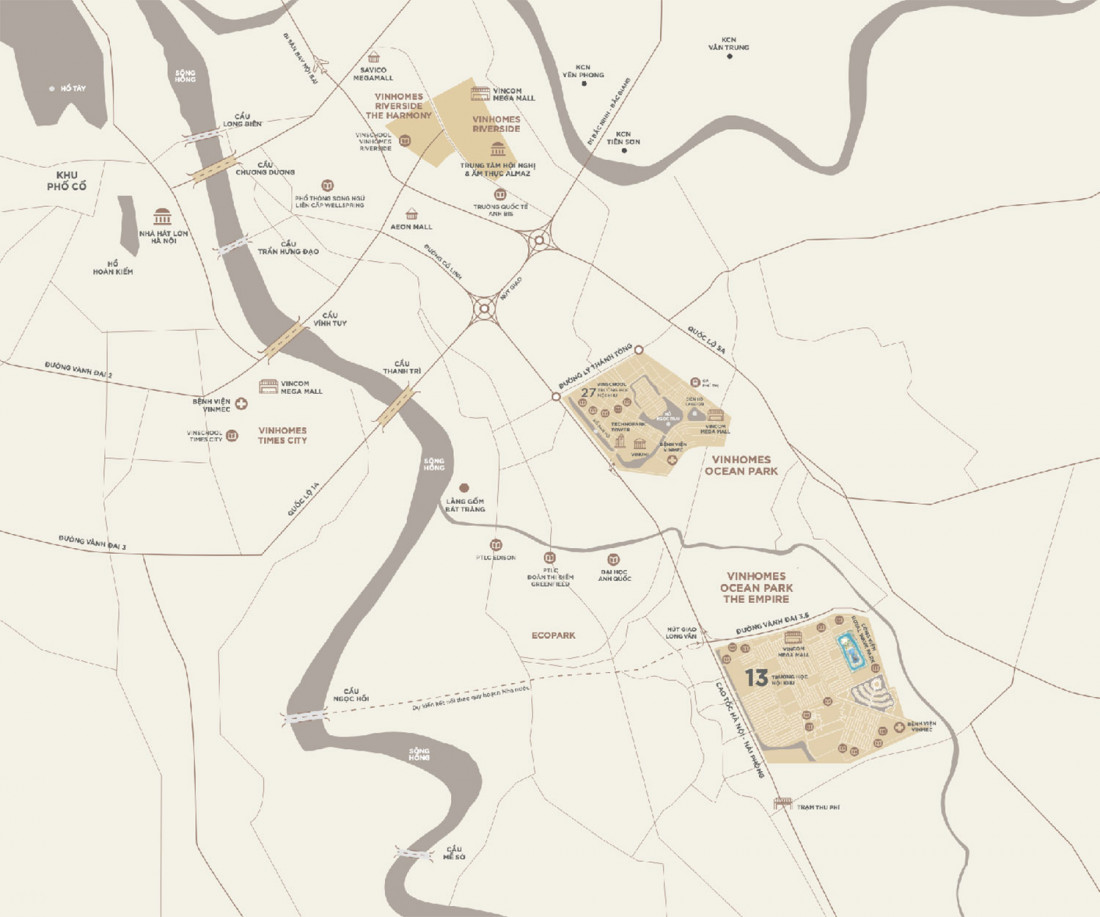 Theo như kế hoạch ngắn hạn mà Vinhomes đã công bố gần đây. 3 siêu dự án ngoại thành Hà Nội sẽ được triển khai thi công gồm có VinHomes Đan Phượng, Vinhomes Cổ Loa và Vinhome Hưng Yên (tên chính thức là The Empire Vinhomes Ocean Park Hưng Yên). Trong đó, Vinhomes Hưng Yên đã được chủ đầu tư triển khai trước tiên.